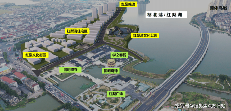 片区包含:圆明晓钟、圆明禅寺、红梨广场、学之客栈、红梨湾文化公园(原金牛园)、红梨文化街区、红梨湾住宅区等,是集“文化、居住、商业、景观、旅游、休闲”于一体的盛泽新兴人居高地。
