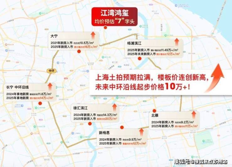 徐汇长桥、杨浦滨江破11万/㎡,长宁天山近12万/㎡,闵行七宝10万+/㎡……