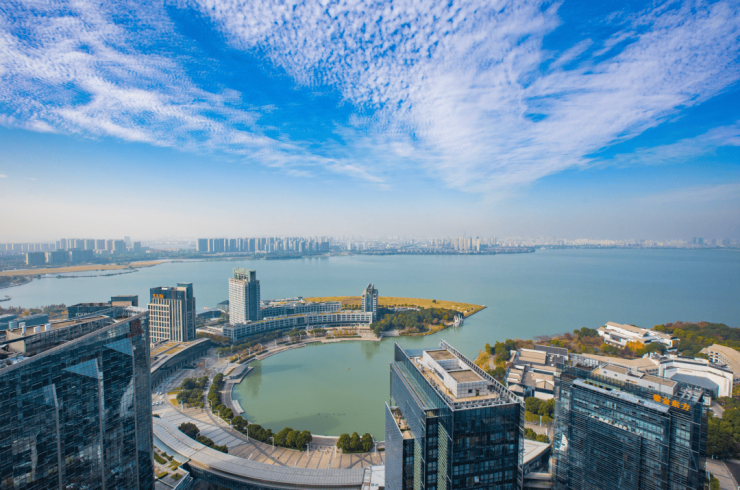 项目北瞰独墅湖,南望园区建筑集群,部分高区房源拥有270°环幕湖景视野。在苏州,拥有永久性一线湖景资源住宅本就是极度稀缺资产。紫云庭以高层70年地标类住宅的形态,将这种稀缺性放大。