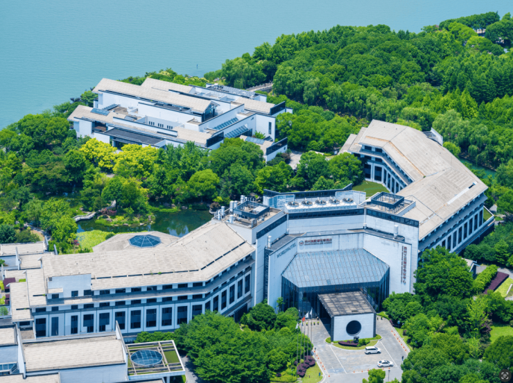 整栋楼立面采用全玻璃幕墙打造,虽然成本高昂,但是隔热保温,节能环保,更重要的是,光幕质感配上一线湖景,呈现丰富、灵动且柔和的光影变幻,构成流动的城市画卷。