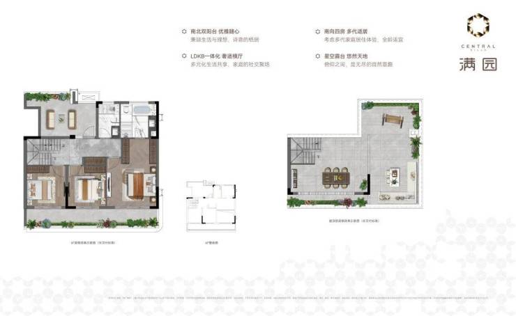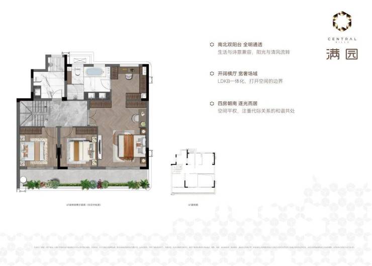 建筑面积约193m²中叠 全明户型,南北通透。LDKB一体化的大横厅,让家显得非常大气。四个房间全部朝南,阳光充足,非常适合多代同堂的家庭,让每一代人都住得舒服,体现了旭辉满园对高品质住宅的追求。