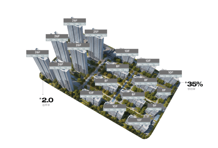6栋17层小高层住宅,264套房子,147㎡和165㎡两种户型,全是四房起步的纯粹改善社区。没有高低配,没有小户型混在里面,邻居都是同一圈层的。