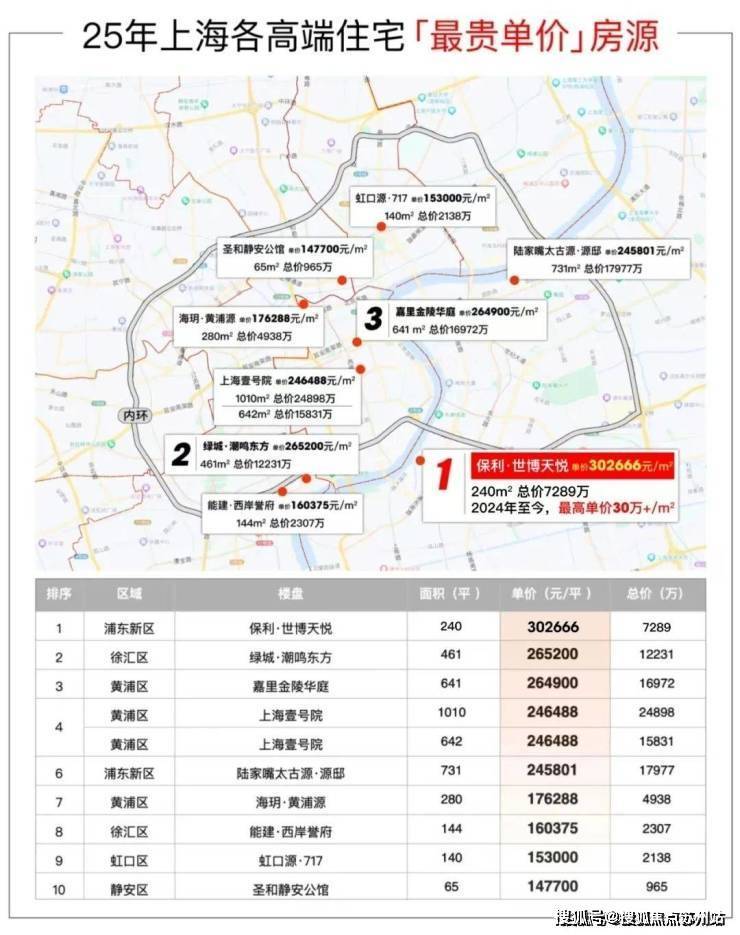 一线滨江世博板块的保利世博天悦以约30.27万/㎡拔得头筹,成为2025年上海豪宅市场的新晋王!
