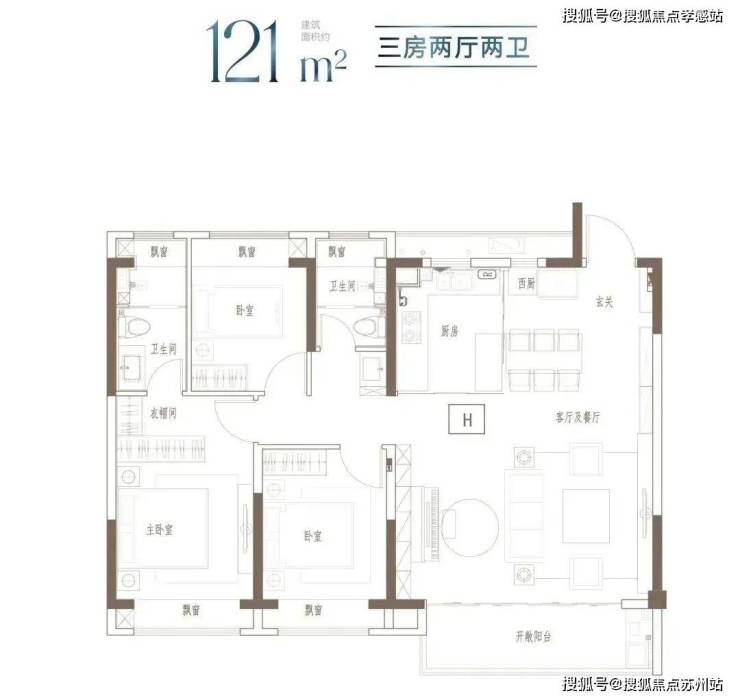 户型特点:3开间朝南,全屋阳光充足;L型厨房转角移门设计,最大化空间视野;四飘窗设计,通透空间享受;动静分区,亲密有度;套房式主卧,容纳私谧生活点滴;