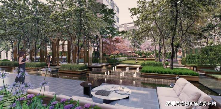 开发商在社区内打造了“一环两轴多节点”的景观体系: