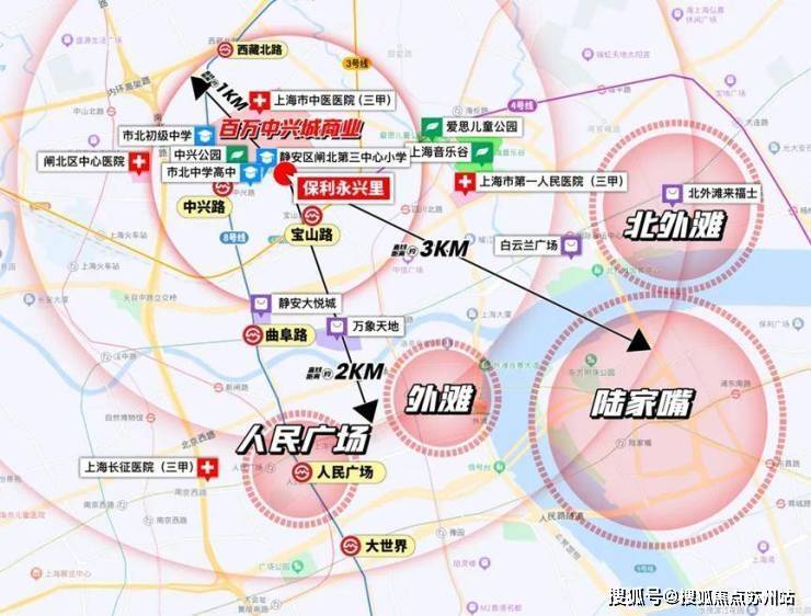 静安保利永兴里坐落于静安区中部,具体位置靠近江宁路与昌平路交汇处,属于静安“一轴三带”规划中的核心发展区域。项目周边交通网络发达: