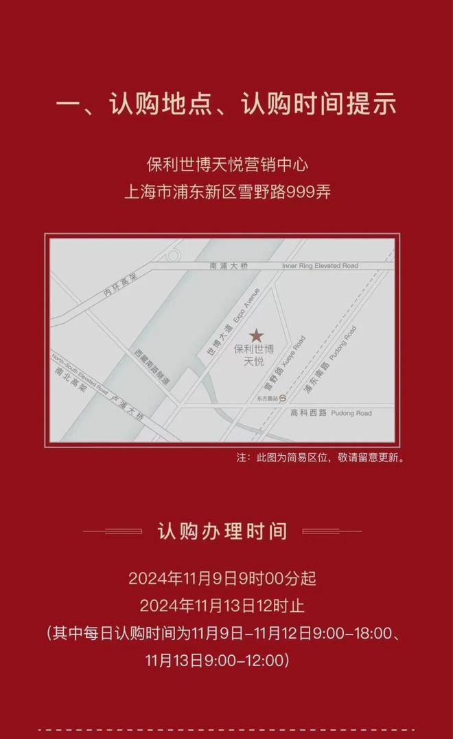 1、项目推广名为“保利·世博天悦”,地名核准名/备案名为“玖丽璟庭”,开发公司为:“上海华辕实业有限公司”;预售证号:浦东新区房管(2024)预字0000332号;2、本资料为要约邀请,不作为要约或承诺;3、相关宣传内容不排除因政府相关规划、规定及出卖人分期规划、未能控制等原因而发生变化;4、买卖双方的权利义务以双方签订的商品房买卖合同及其补充协议、附件等书面文件为准;5、本宣传材料所涉及户型仅供示意参考,具体以政府部门最终审定的图纸和销售合同为准,本资料所涉及面积皆为预估面积,相同户型单位因楼栋、楼层、单元等差异,局部结构、形式、面积、装饰等可能有所不同,且预估面积与实际面积可能存在差异,面积最终以房管局测绘为准。户型图中装修、家具、电器等设备仅为示意,不属于交付内容和交付标准,实际部品的选型和房间空间尺寸根据户型情况,略有差异,以现场实际为准;6、本宣传资料中涉及的价格、折扣、付款方式等信息,因销售时间、户型楼栋、楼层、方位等不同有所差异,以双方签订的商品房买卖合同及其补充协议、附件等书面文件为准;7、本资料所发布的内容为2024年11月的信息,敬请留意最新资料。