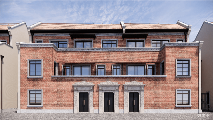 在立面的元素中,既有汲取周边老城厢、三益里建筑山花的“山花山墙”,也有汲取隆信坊、老城厢的窗户装饰,并且还有汾州里特有的栏杆装饰风格。不同别墅元素排列组合,呈现出个性化的生活范本,让业主体验到独一无二的尊崇感和仪式感。