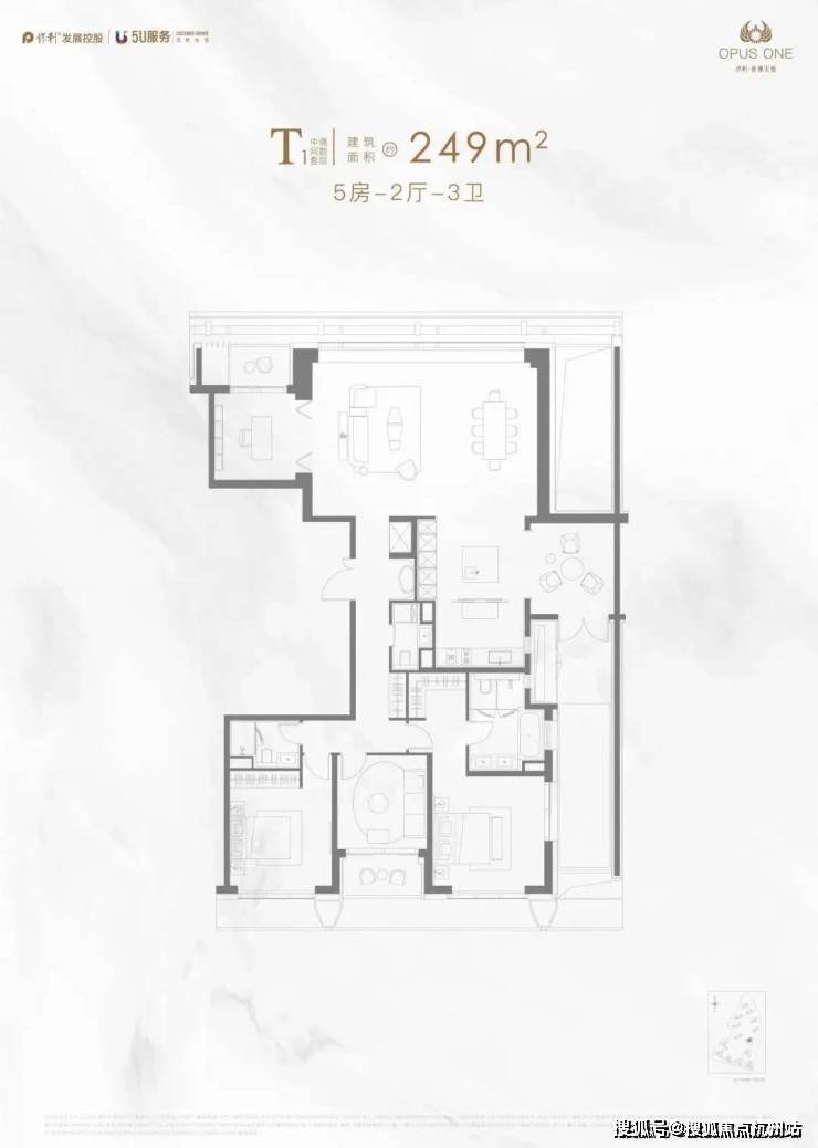 主力户型:190-252㎡(3-5房),层高3.35米,得房率79%。