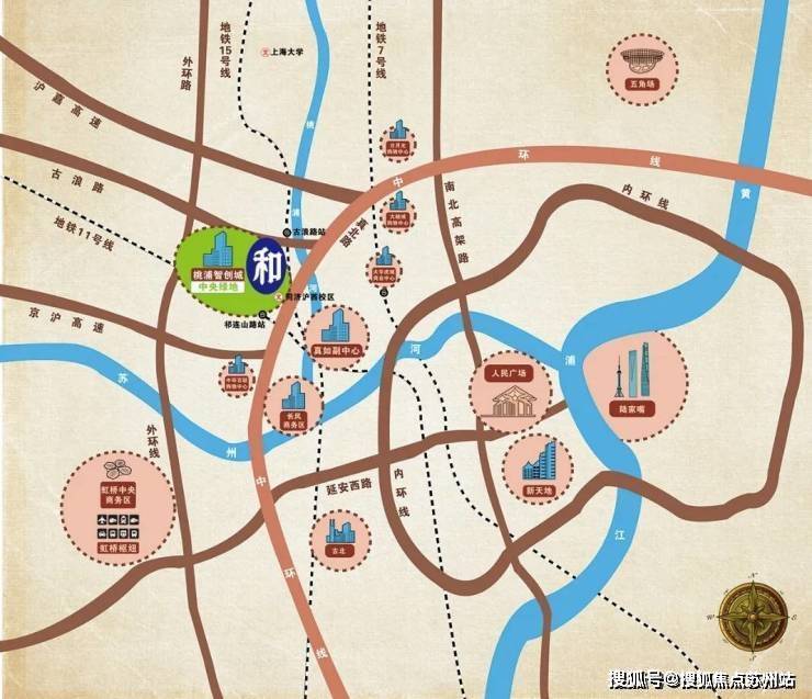 项目位于上海七大中心城区的普陀区桃浦板块,中心城区的西北门户,距中环线仅1公里,上中环后即可到达人民广场、虹桥枢纽、陆家嘴。