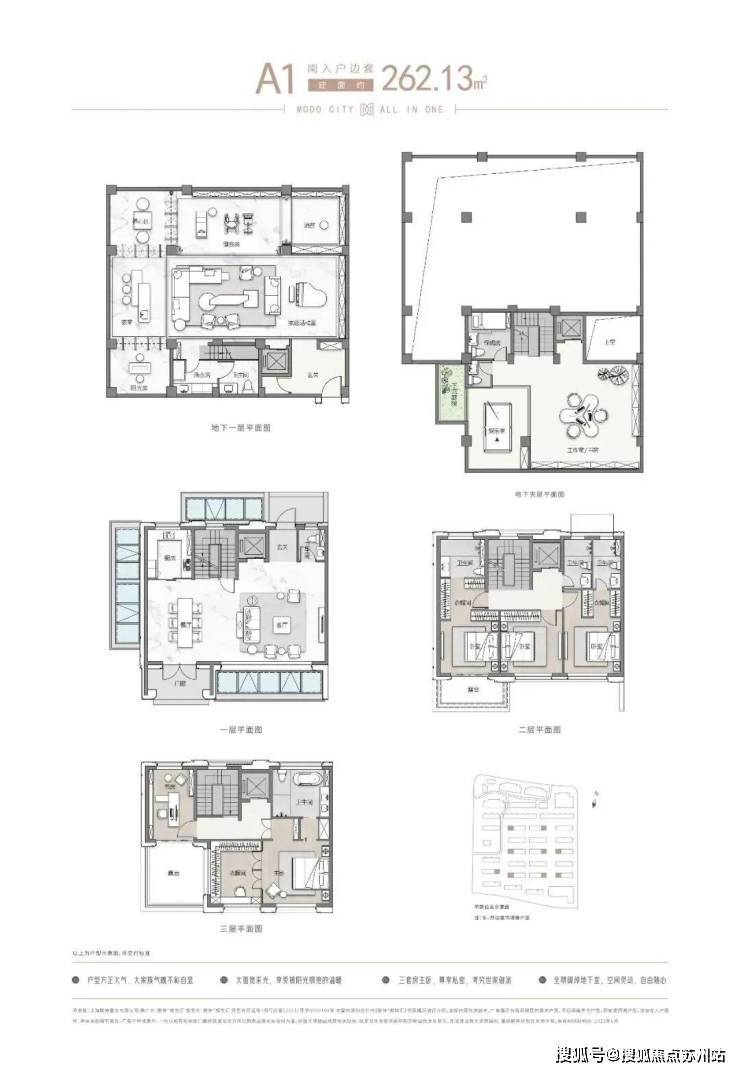 项目主推建面约262-305㎡联排别墅,分为南北入户,均为地上三层,地下两层设计,满足业主们“有天有地有花园”的别墅居住体验!