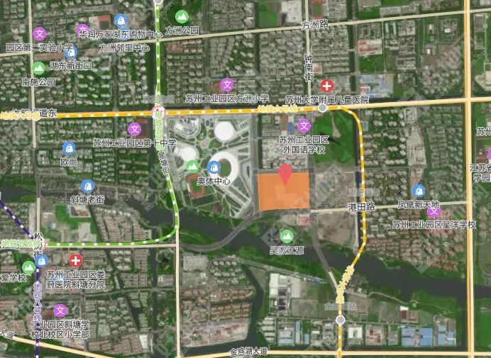 周边配套方面,奥体作为园区乃至整个苏州的核心板块,居住成熟度非常高,板块内配套也一应俱全。交通:距离地铁5号线和6号线(在建)换乘的奥体中心站1公里左右,最近的6号线中新大道站往北500可达,此外还有金鸡湖大道、中环东线、中新大道(连接正在修建的金鸡湖隧道)、现代大道等交通干道。教育:地块北面幼儿园已经在建,西面有苏州工业园区外国语学校。苏州海归人才子女学校、苏州中学园区校、德威英国国际学校、星洋学校、星汇学校、苏州工业园区方洲小学等优质中小学都不远。医疗:苏大附属儿童医院,九龙医院、苏州园区娄葑医院斜塘分院等。商业:西面是奥体中心,3公里范围内还有湖东欧尚、方洲邻里中心、斜塘老街、永旺梦乐城等。