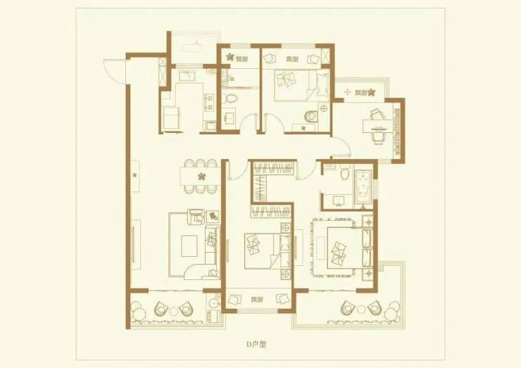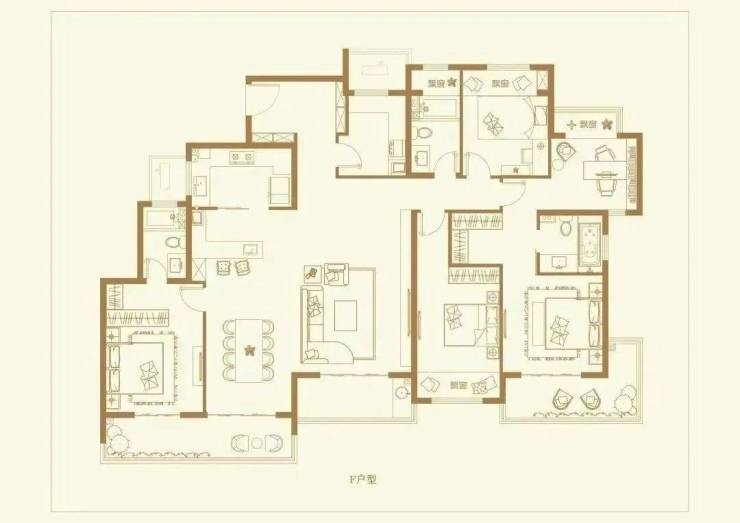 *F户型 超大五房/岛台双厨 建筑面积约226㎡/5房2厅2厨3卫