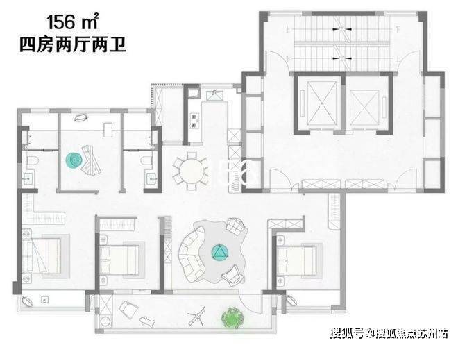 比如,全盘户型全4-6开间朝南+双阳台+全明卫,自带额外X空间。尤其是建面约156㎡户型,南面宽达到约15米,堪比市面上约190㎡户型。