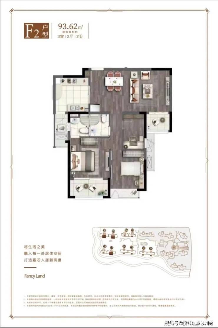 17-19-20号楼边套、约108㎡3房2厅2卫、总高18层(两梯四户)