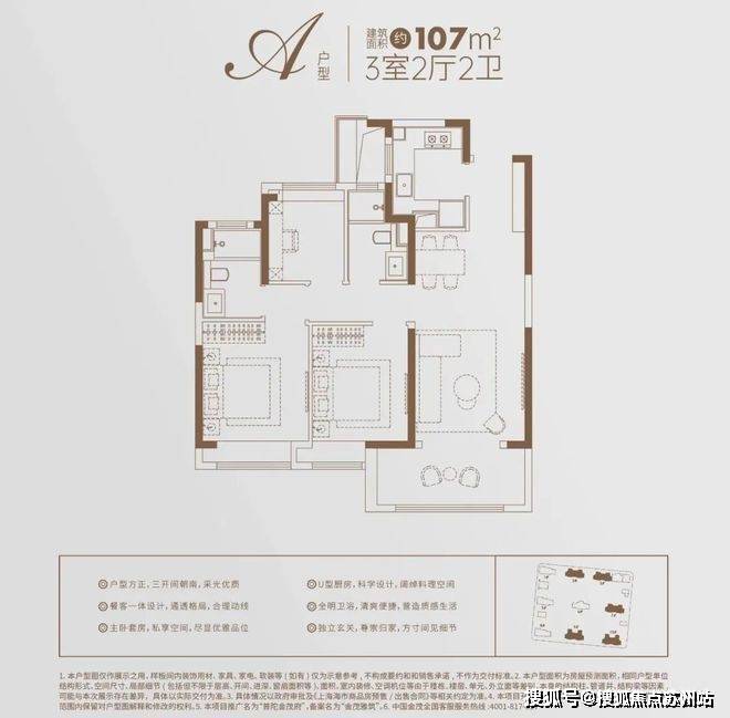 该户型位于7#楼,整个户型兼顾功能性与舒适性,空间利用率高,集LDBK一体化、玄关入户、动静分区设计、U型厨房、双卧飘窗、强大收纳等多重优势。