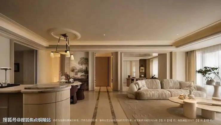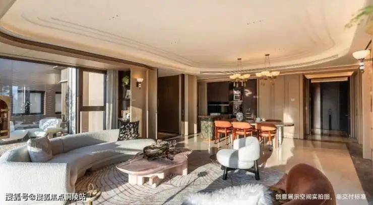 比如这个建面约238㎡户型,采用环幕设计,将徐汇滨江城市景观、下沉庭院等自然与人文景观尽收眼底,营造沉浸式居住体验。