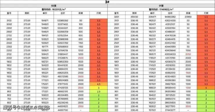 建面约238㎡户型的均价约17.3万/㎡,建面约275㎡户型的均价约18.2万/㎡,