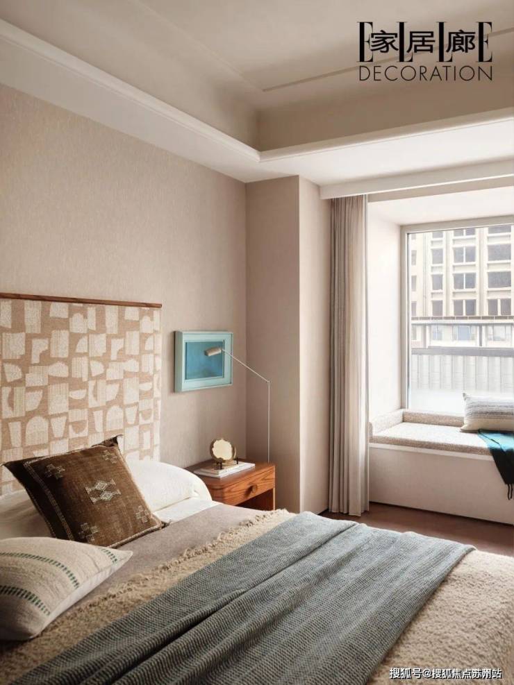因此,设计摒弃花哨的视觉语言,回归到“感受”本身。“作为最接贴近自己的空间,卧室里你最在意的是什么?”,这个答案落在了“环保”与“亲肤”上。设计师选择羊毛、棉麻等作为卧室空间的体感材料。而不管是从欧洲特别定制的毛毯到床头软包面料都经历了一系列苛刻的筛选,以达到人们心目中理想的使用体验。