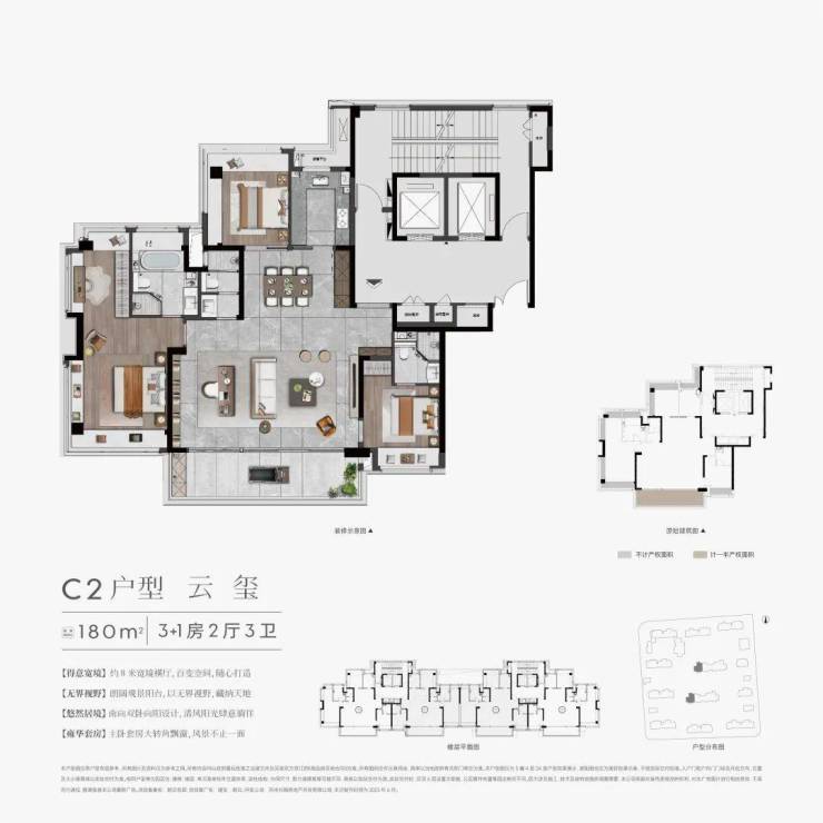 云玺 建面约180㎡户型 3+1房2厅3卫