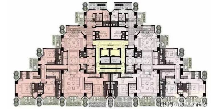 住宅户型呈金字塔造型,超大客餐厅,充分利用南向面宽,360°采光不浪费一丝一毫江景。