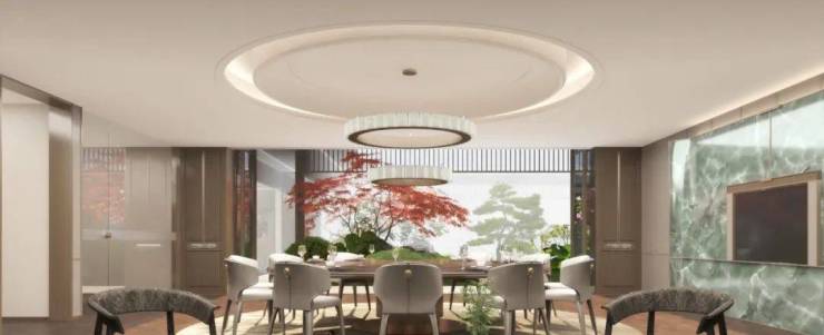 一种是宋风叠加,面积约195-213㎡。它把宋代的美学韵味和现代叠墅结合,有大面的框景设计、极简的立面,南北看出去风景不同,建筑细节像艺术品一样精致,适合追求雅致生活的改善家庭。