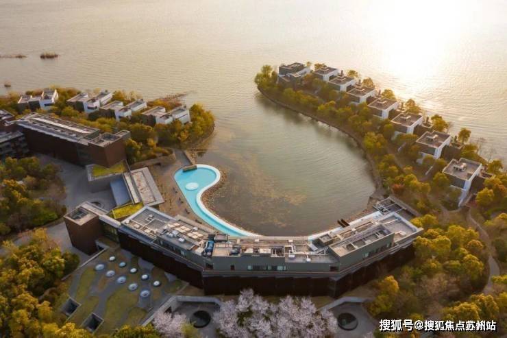 音昱水中天坐落在阳澄湖畔,整个区域就像一座长长的岛,超过一公里的距离,两侧都是湖面,可谓“宛在水中央”,它离城市很近,却又好像很远,明明20分钟之外的世界是喧闹与嘈杂,这里却一派空灵姿态。其实,距离苏州最繁华的园区就20分钟车程,离上海也不过一小时。
