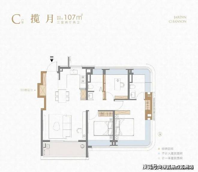 这个 建面约107㎡刷新了我对百平三房的新认知,据悉该户型或将申请专利,实至名归!