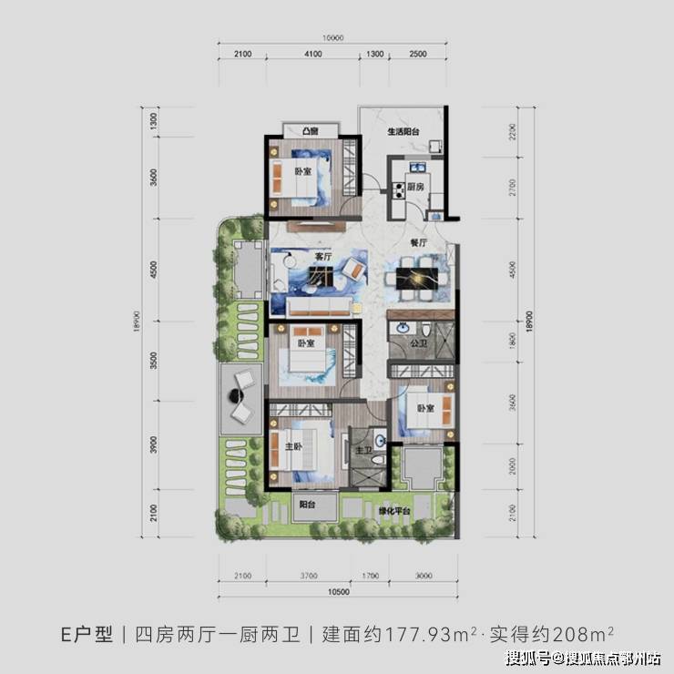 性价比之王,舒阔空间通透格局,全明四房典雅设计