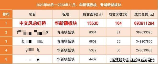 作为热销10亿+的项目,继首开之后,中交凤启虹桥再次荣登8-11月华新、青浦镇板块在售新盘中, 成交套数、成交面积、成交金额三大榜首!且远超第二名成交2倍之多!名副其实的实力选手!