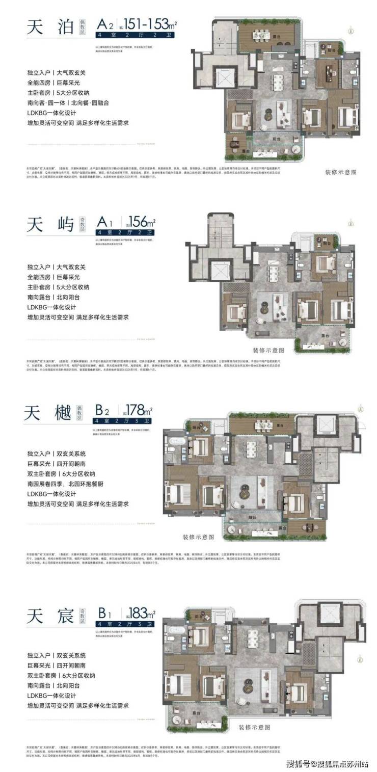 太湖天誉整体规划总户数仅286户,由7幢四代洋房+24幢式叠加组成低密住区,项目定位吴江高端住宅市场的迭代人居范本,在多个维度都是目前吴江市场的TOP。
