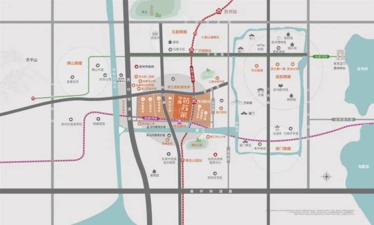 项目位置有多核心?它坐落于姑苏区资源最密集的“胥江高阶生活带”,出门就是“两轨六轴”的立体交通网。地铁2号线和5号线就在旁边,轻松换乘,半小时通达全城。更让人心动的是,家门口就是大型商业综合体——胥江天街,里面有很多苏州首店,逛街、吃饭、看电影,下楼即享。