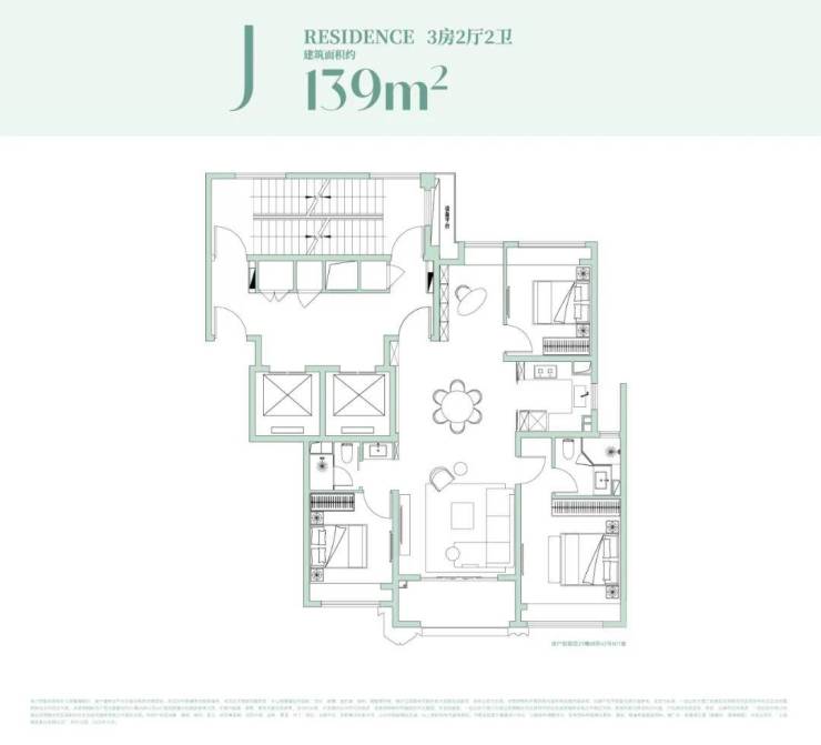 建面约129㎡4房:四叶草布局,核心滨江完美4房