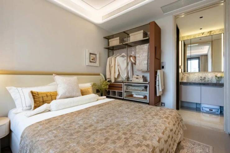 南向房间空间充裕,灵活性高——可参照样板间打造超大衣帽间,满足收纳需求;即便作为卧室使用,仍能预留出宽敞衣帽间区域。