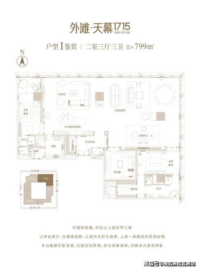 上海黄浦外滩·天幕1715售楼处电话☎:400-8123-664(售楼处预约看房热线)270°面南向大宽厅,南北通透,光景绝佳.开敞视野自成气度,雍容舒展,窗内、窗外皆可作“景”,内敛深刻中畅贯优雅情调自然延伸.