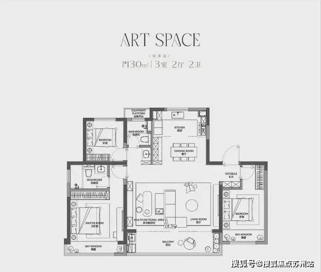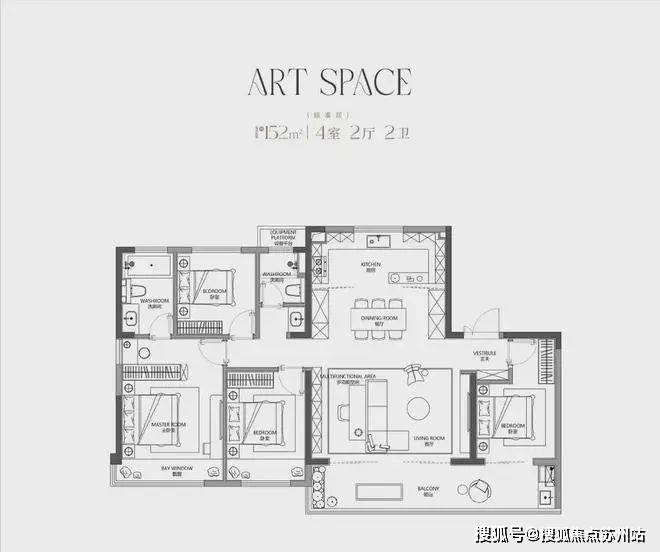 布局合理得房率高,飞机户型,长辈间与之分离,彼此不打扰、更好地休息。