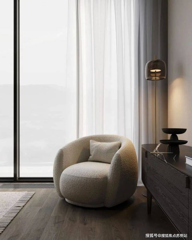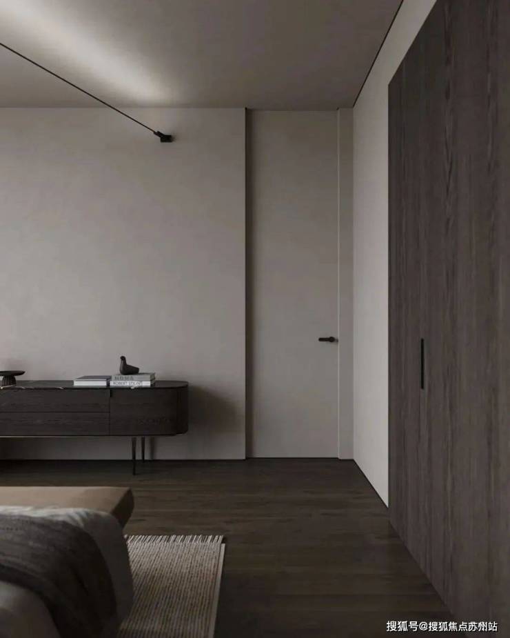 杭州华景川云檐里售楼处电话☎:400-8828-814(官方预约看房热线)主卧的色调十分简约内敛,为屋主打造出了一个能够使人沉淀心灵的休憩空间。深木色的存在让空间更显厚重而沉稳,柔软而蓬松的白色床品与其形成了对比。床头灯的造型简洁却富有设计感,床对面的沙发椅能够让屋主在这里度过惬意的下午茶时光。衣帽间中则选用深色与暖调的灯光营造精致的空间氛围。