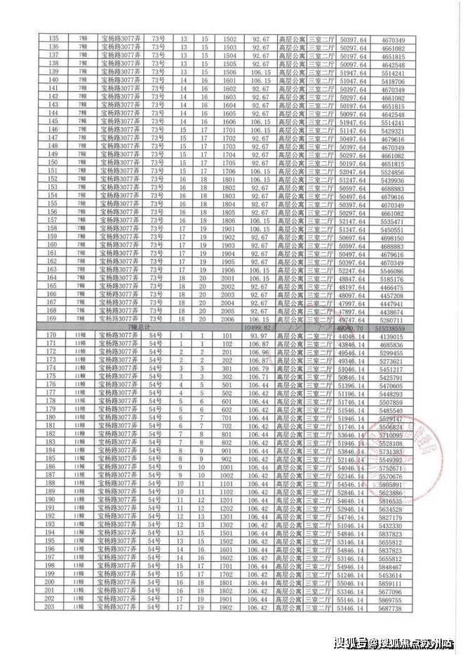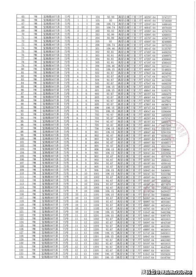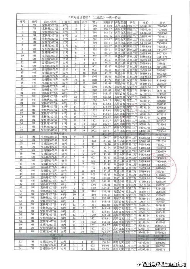 上期一房一价表如下