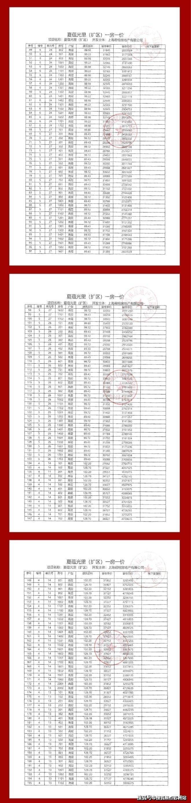 项目一房一价表