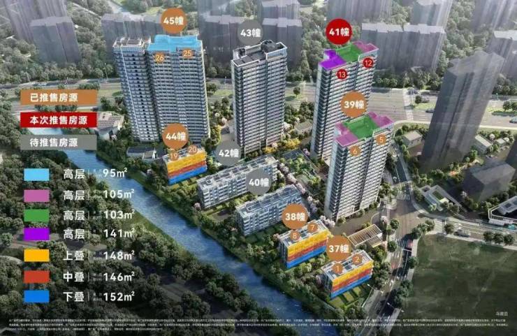 建筑面积约105㎡三房,进阶改善绝版“三阳台”户型,主力总价段约700万级,部分房源总价约650万级。