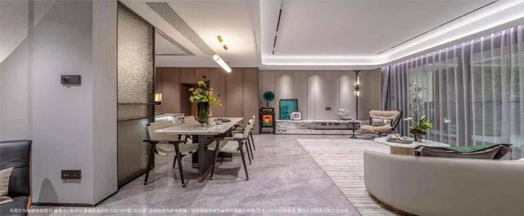 5. 整体采用了海派的装修风格,例如更耗时更费钱的带弧度的半圆形吊顶!以及当大部分项目还在用长虹玻璃时,招商臻境在厨房的三轨道移门处使用了水波纹玻璃,更具奢华感!这样的细节上次还是在看3000万级别的豪宅时才看到!
