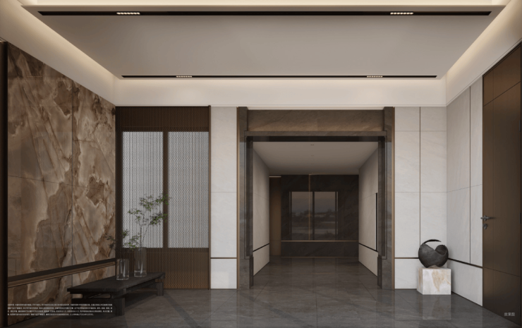 公区奢域:从地上大堂到地下车库大堂,全部精装修。用了很多定制石材、岩板,每次回家都充满仪式感。