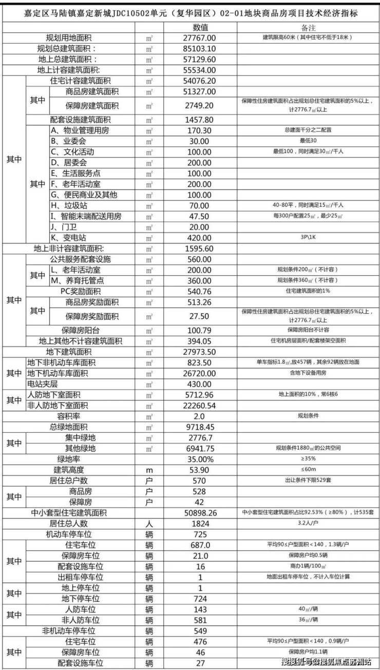 本项目拟建2层配套设施2栋,14层住宅楼1栋,17层住宅楼1栋,18层住宅楼6栋.总建筑总建面85103.1㎡,其中计容建筑面积55534㎡,容积率2.0;共570户.