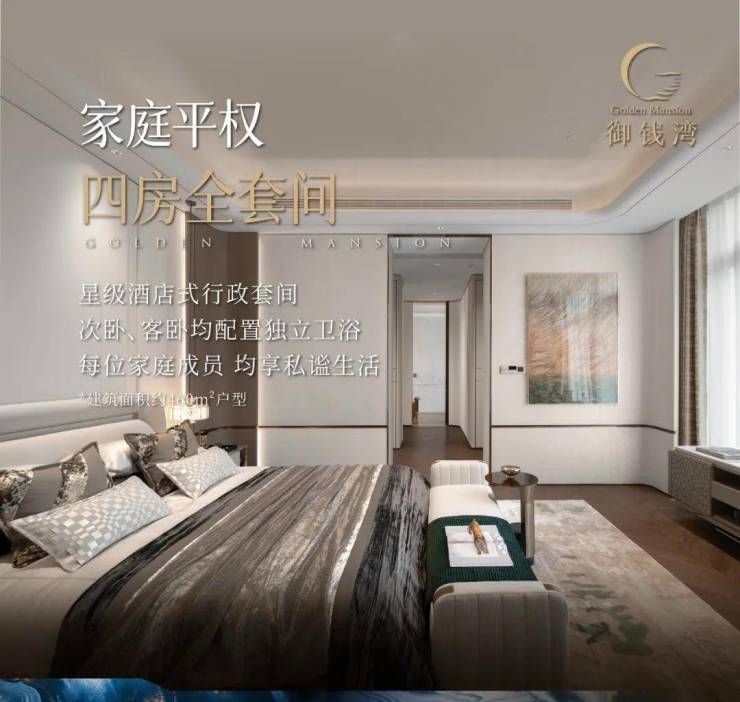 几近绝版的一梯一户,保姆梯直通家政间和厨房,餐客厅面积达到了109m²,远超普通大平层的70m²,层高4m净高3.4m,远超普通的3m。4个套房+保姆间的设计,每个人都有自己的独立空间,互不打扰。餐厅两个隐藏门进去,男孩房活泼有趣,女孩房文静甜蜜,10楼以上还能看得到钱塘江。
