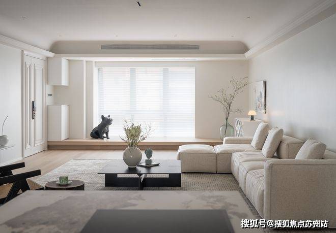 设计将采光较好的入户玄关、厨房打通,增设地台,公共区域巧妙衔接,整体空间得到延伸,视觉上也符合女屋主喜欢的宽敞舒适之感。