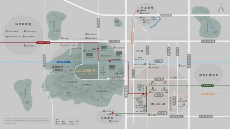 山语澜院的位置非常巧妙,正好处在苏州高新区的中心地带。东边是热闹的狮山CBD,西边是现代化的科技城,两边的优质配套都能轻松享受到。出门通过何山隧道,瞬间切换都市繁华与自然静谧,真正实现了“出则繁华,入则宁静”的理想生活,是名副其实的狮山科技城楼盘。
