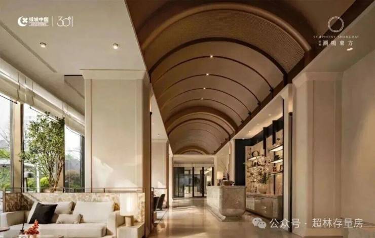 项目示范区公区室内以“东意西境”理念,将国际酒店场景融入其中,创作“城市微度假”新境。从入口过厅,到艺术长廊,再到水吧台,摒弃繁复的ArtDeco铁艺雕花,将外滩拱券抽象为流畅金属弧线,设计元素“圆弧”贯穿始终。室内对石材抛光追求雅的质感,这种克制,恰是对西岸国际化人群追求现代简约,并渴望空间承载文化厚度的共鸣。