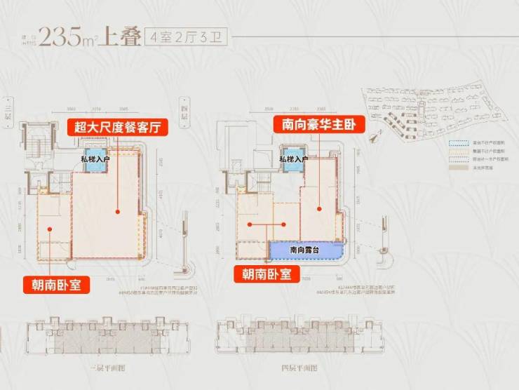 项目三批次加推1栋建面约125㎡四面宽的小高层,还有1栋四叠新品(建面约228㎡下叠+建面约235㎡上叠)。