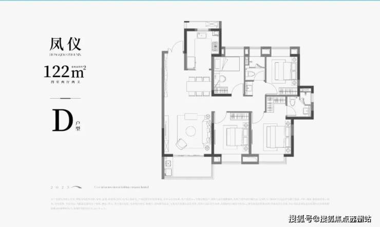 建面约124㎡4房三开间朝南,主卧为独立套房,私密性和舒适度保持在较高水准;