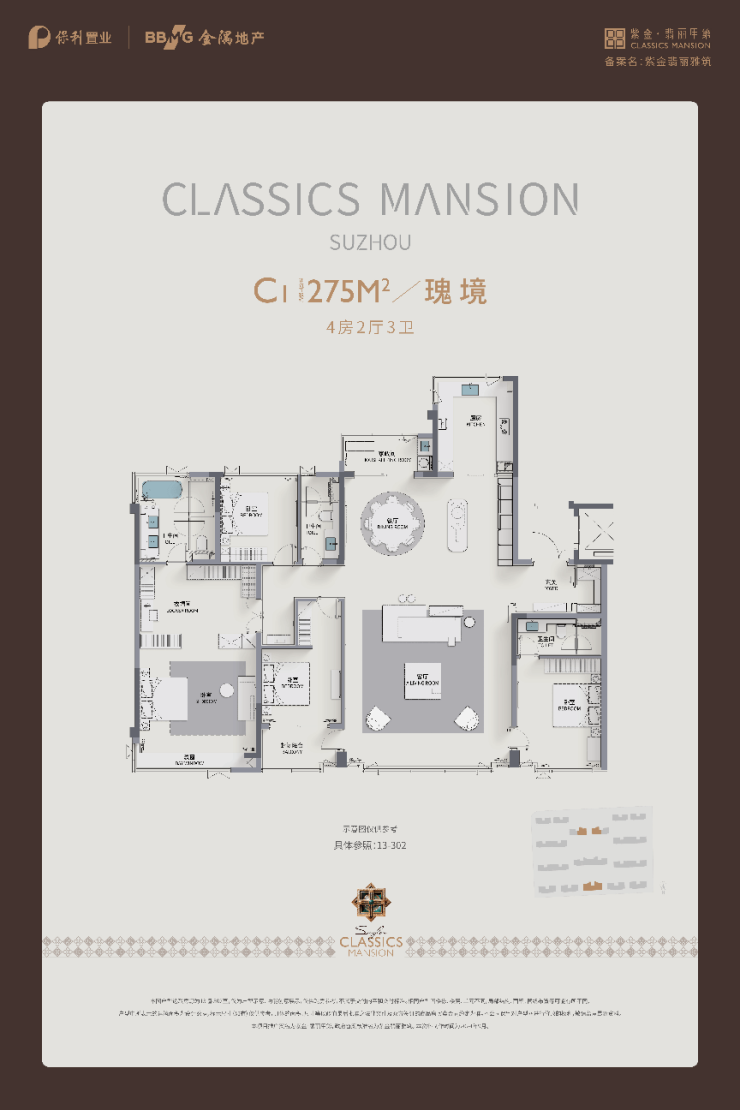 建面约275㎡ 四房:尺度恢弘,私密性绝佳,堪称传世级的平层大宅。